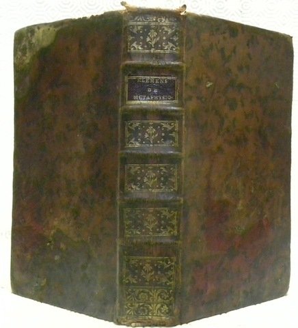 - veau marbré de l’époque, dos à nerfs, pièce de titre, fleurons dorés, tranche rouge, coiffes emdomagées, taches rouge sur les plats.