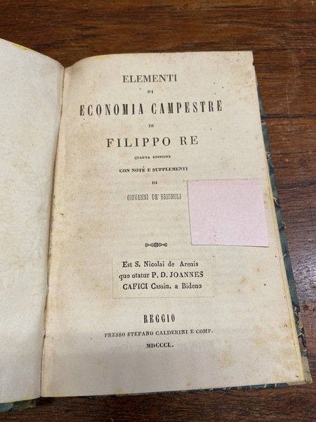 Elementi di economia campestre quarta edizione con note e supplementi di Giovanni De Brignoli