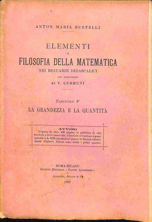 Elementi di filosofia della matematica nei riguardi didascalici. Fascicolo 4o. La grandezza e la quantita'
