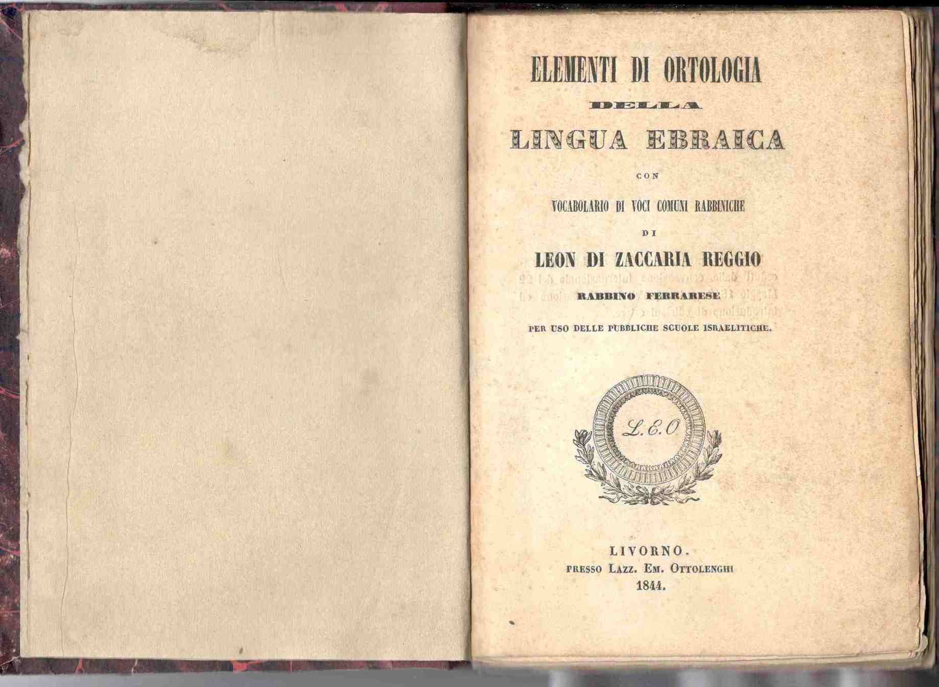 Elementi di ortologia della lingua ebraica con vocabolario di voci comuni rabbiniche