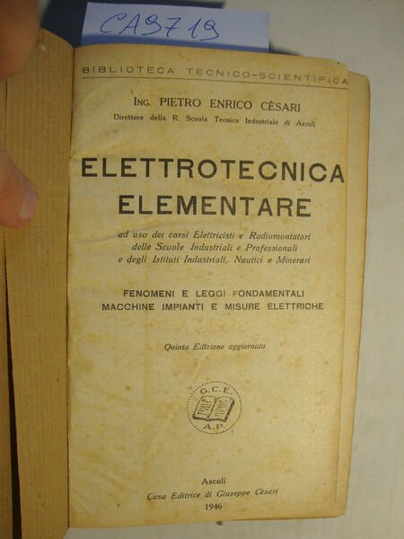 Elettrotecnica elementare ad uso dei corsi Elettricisti e Radio-elettricisti delle Scuole industriali e Professionali e degli Istituti Industriali, Nautici e Minerari - Fenomeni e leggi fondamentali - Macchine, impianti e misure elettriche