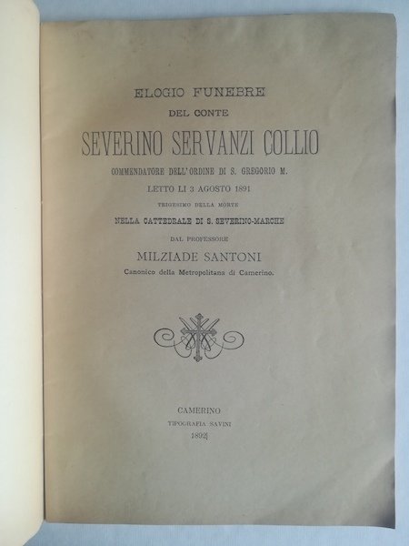 Elogio funebre del Conte Severino Servanzi Collio. letto. nella cattedrale di S. Severino Marche
