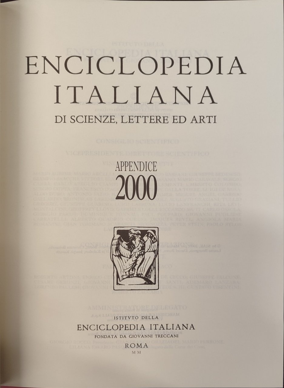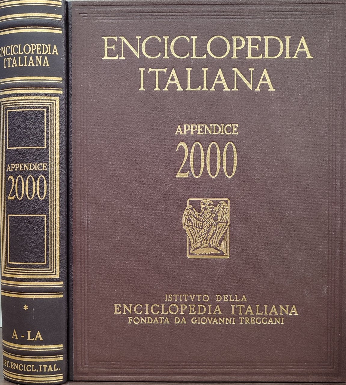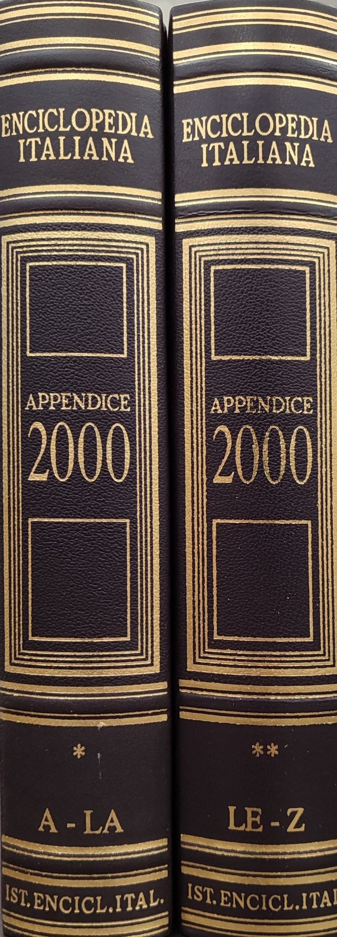 Enciclopedia italiana appendice 2000. 2 volumi A-LA LE-Z. Opera usata proveniente da collezione privata. La copertina riporta lievissime tracce di fioriture. Interno in perfette condizioni. in quarto 2.000 Ottimo (Fine) Opera usata proveniente da collezione privata. La copertina riporta lievissime tracce di fioriture. Interno in perfette condizioni..