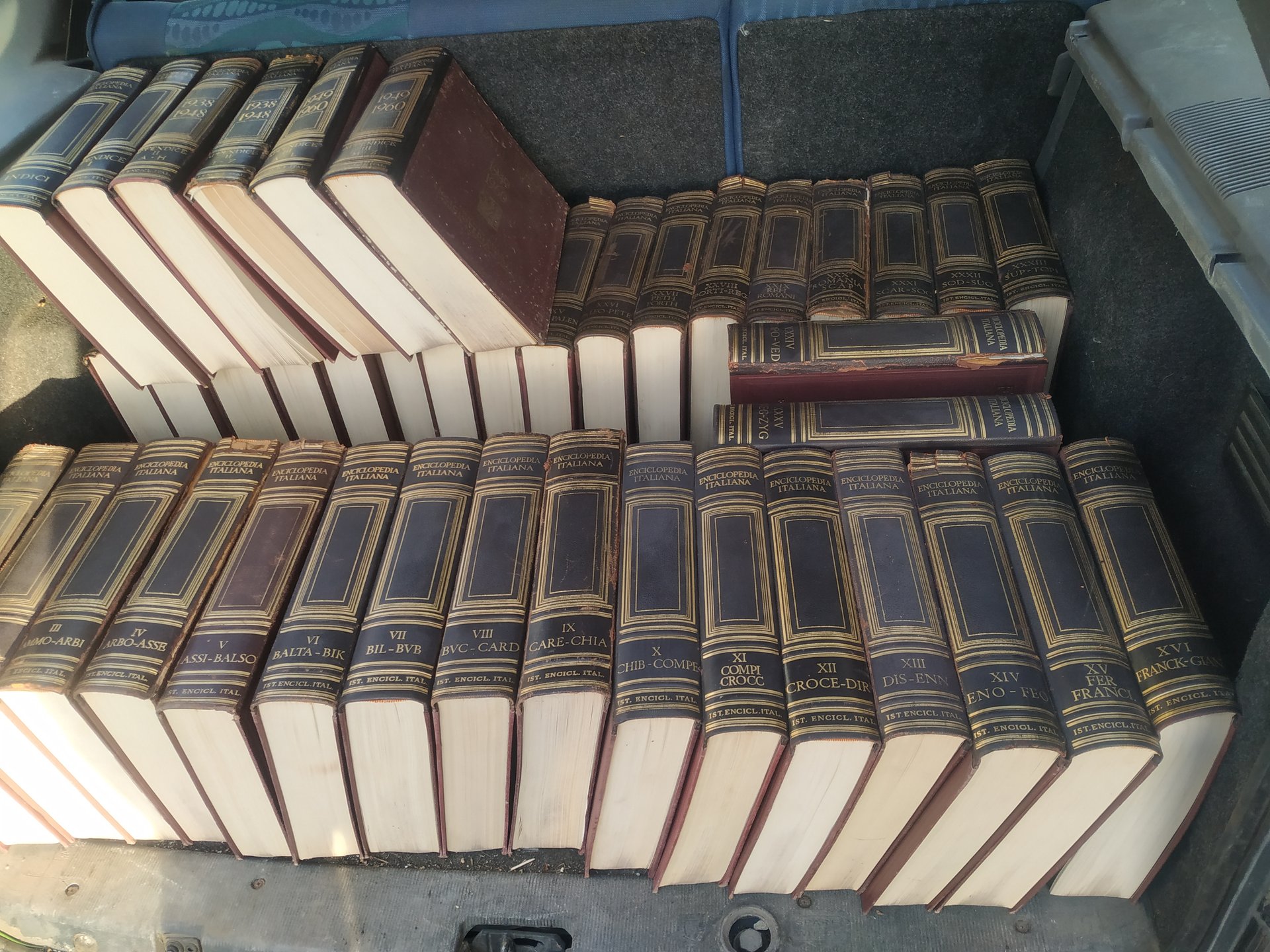 enciclopedia italiana treccani - opera cpl. 35 voll. e 1 indice, 5 appendice 1938-1948 e 1949-1960 per un totale di 41 voll. buone condizioni generali, alcuni volumi un pò rovinati sulla costa, altri assolutamente nuovi. vendo anche sfusi. (14,15,16,17 venduti)