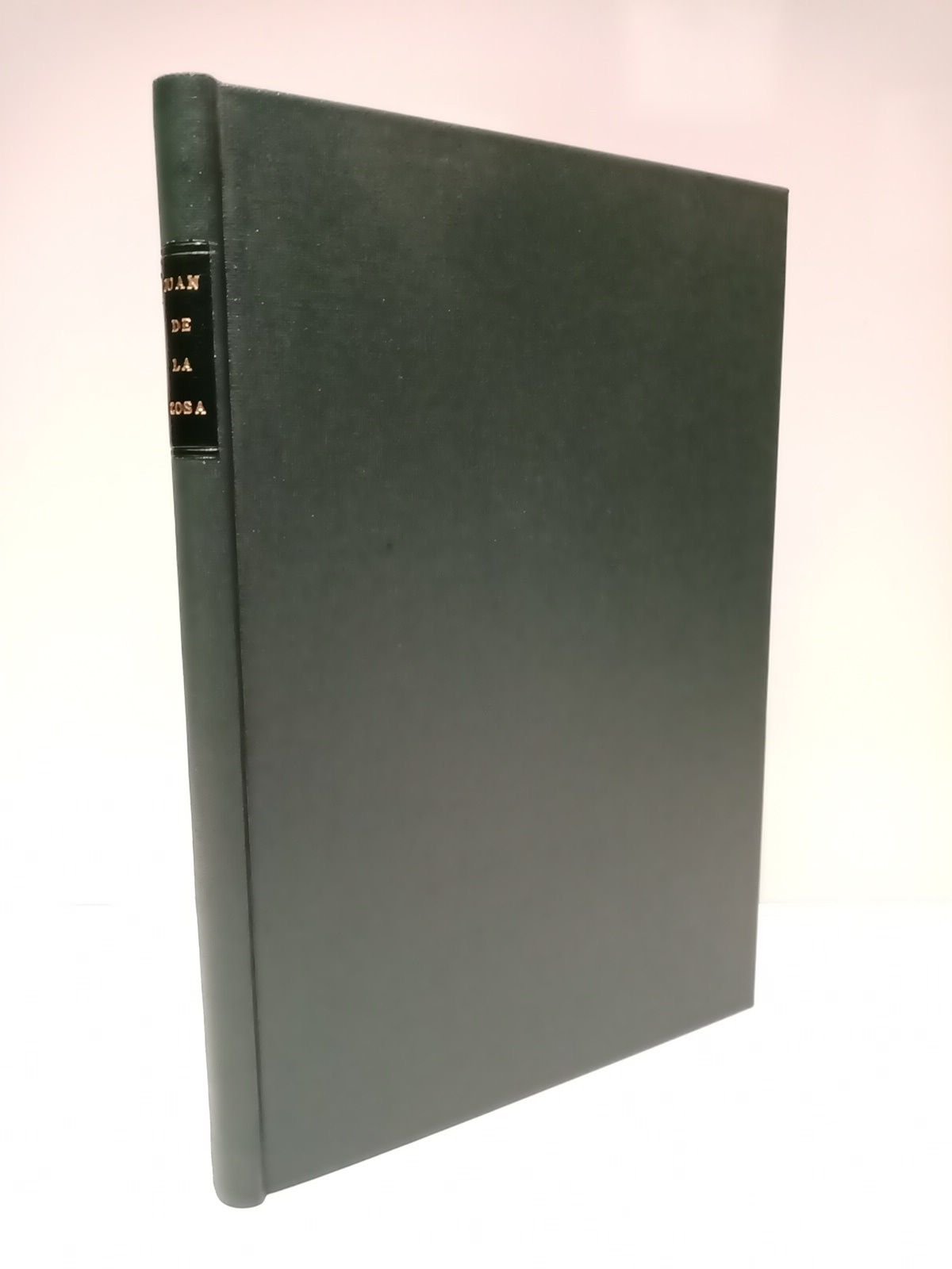 [Edición en español, francés e inglés].- Madrid: Tipo-Litografía de V. Faure, 1892.- 109 p.: Una lámina con la fotografía del mapa enmarcado; 4º. menor (21,4 cm.); Texto trilingüe; Finamente encuadernado en Tela Nueva verde con tejuelo en piel, sin conservar las cubiertas originales.* Ejemplar restaurado de unas faltas en el margen superior de las últimas cinco hojas, sin afectar la lectura, y restaurado de otras dos faltas en la portadilla, sin afectar texto. Esta obra se hizo para acompañar al Mapa de Juan de la Cosa que, como recuerdo del Cuarto Centenario del descubrimiento de América, publicaron en Madrid los Sres. Cánovas Vallejo y Traynor. CONQUISTA, PERIODO VIRREINAL E HISTORIAS GENERALES DE IBEROAMÉRICA