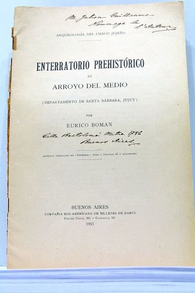 17 pages (16x25cm). Couverture imprimée. Petites déchirures au dos. Bon exemplaire à l'intérieur. Nombreuses Illustrations. Argentina. Buenos Aires. Rare. Envoi de l'auteur. Archéologie.