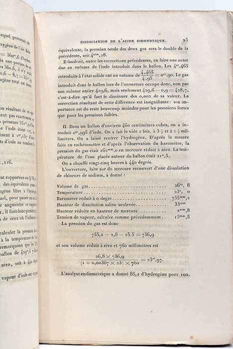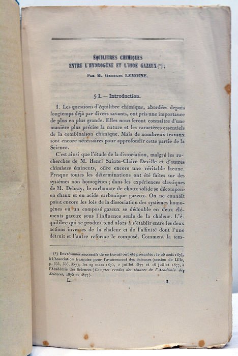 109 pages. 109 pages. (1 feuilletblanc). Broché, couverture muette de l’époque. (23x14 Cm). Ce mémoire contient les recherches et expériences de l'auteur sur l"hydrogène et l'iode gazeux. Tir-à-part des "Annales de Chimie et de Physique"’. Bon exemplaire non coupé, à toutes marges. Rares taches et rousseurs.