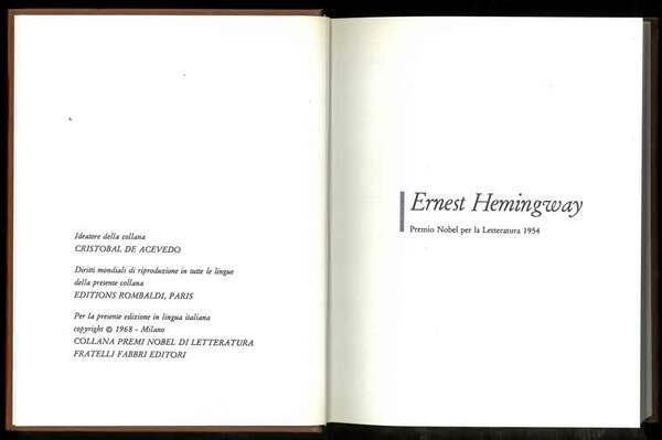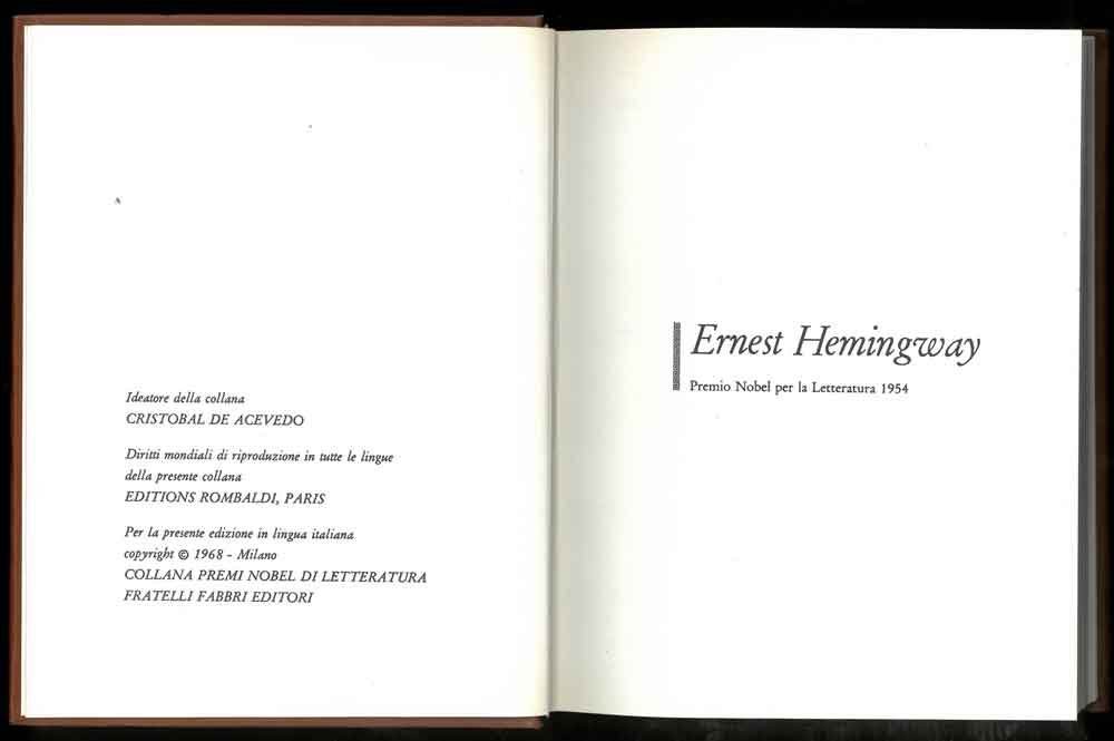 Ernest Hemingway. Premio Nobel per la Letteratura 1954.