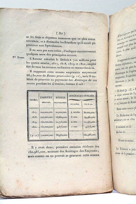 1 feuillet. 87 pages. 1 feuillet. (21,5x14 Cm). Broché. Couverture muette de l'époque. Petits manques et déchirures. Ouvrage sur les finances dans lequel l'auteur, maître des requêtes au conseil d'Etat, entend réfuter les critiques de "cette foule de Financiers présomptueux qui, chaque année, aux approches du Budget, nous inondent de leurs plans et de leurs projets". Exemplaire non rogné. Traces de plis et rares rousseurs.