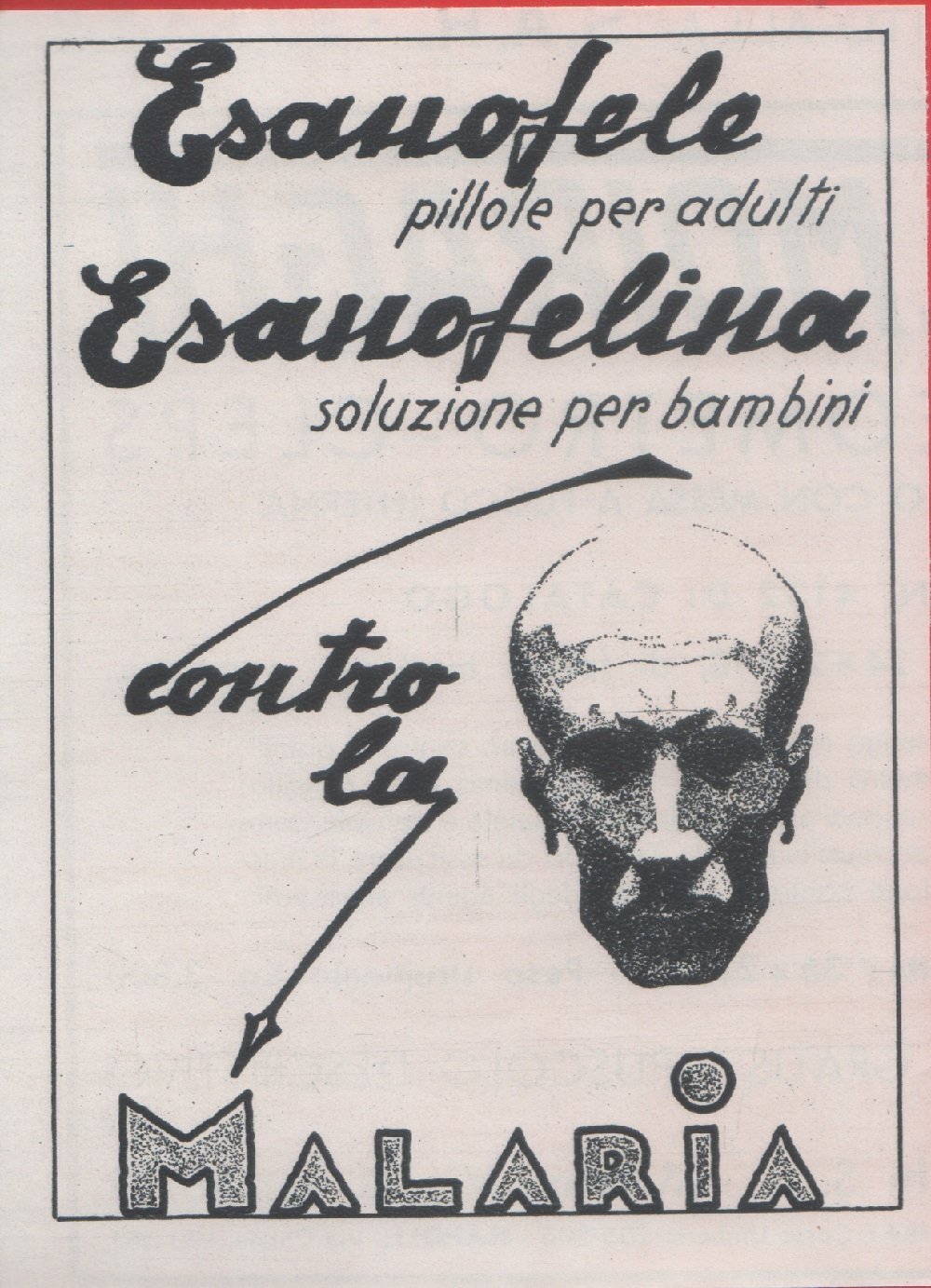 Esanofele, Esanofelina contro la malaria. Advertising 1935