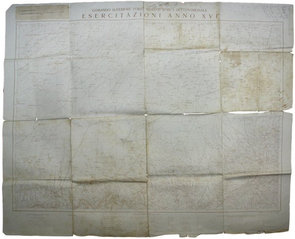 (Codice VF/1480) Grande carta militare a colori, cm 112x93 circa, scala 1:100.000. Ingialliture, strappi ai margini e alle piegature, varie note coeve a matita, ma completa. ~~~ SPEDIZIONE IN ITALIA SEMPRE TRACCIATA