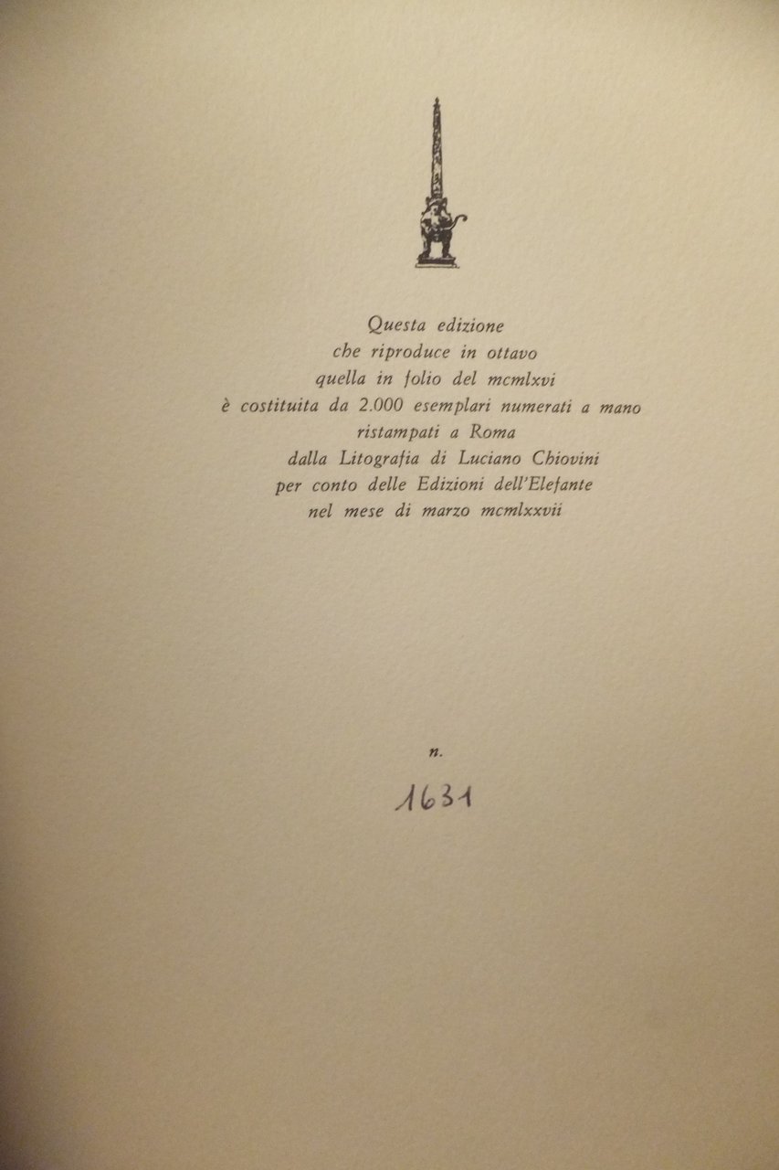 EDIZIONI DELL'ELEFANTE 1977 - IL TRIDENTE COLLEZIONE IDEATA E DIRETTA DA ENZO CREA - TIRATURA DI 2000 ESEMPLARI - N. 1631 - BROSSURA SOVRACOPERTA 24 X 17 PP. 94 CONDIZIONI MOLTO BUONE, LIEVE USURA DORSO DELLA SOVRACOPERTA.