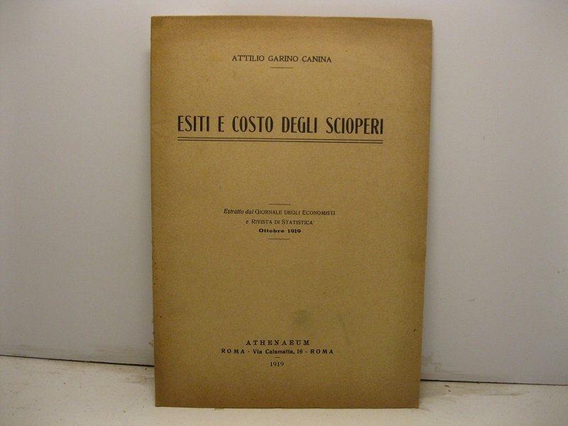 Esiti e costo degli scioperi. Estratto dal Giornale degli Economisti e Rivista di Statistica, ottobre 1919