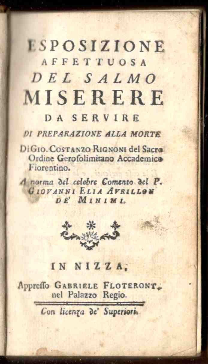Esposizione affettuosa del salmo Miserere, per servire di preparazione alla morte. A norma del celebre comento del p. Giovanni Elia Avrillon