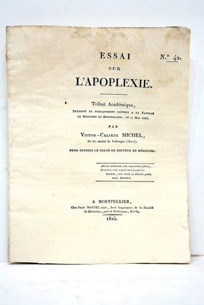 Essai sur l'apoplexie. Tribut académique présenté et publiquement soutenu à la Faculté de Médecine de Montpellier, le 17 mai 1825.