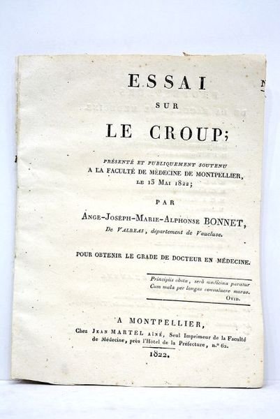 Essai sur le croup. Présenté et publiquement soutenu à la Faculté de Médecine de Montpellier, le 15 mai 1822.