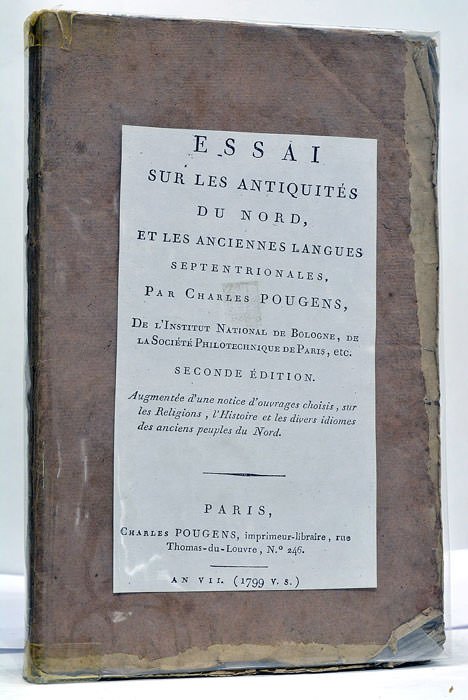 Essai sur les Antiquités du Nord et les Anciennes Langues Septentrionales. Seconde édition augmentée d'une Notice d'ouvrages choisis sur les Religions, l'Histoire et les divers idiomes des anciens peuples du Nord. Paris, Charles Pougens.