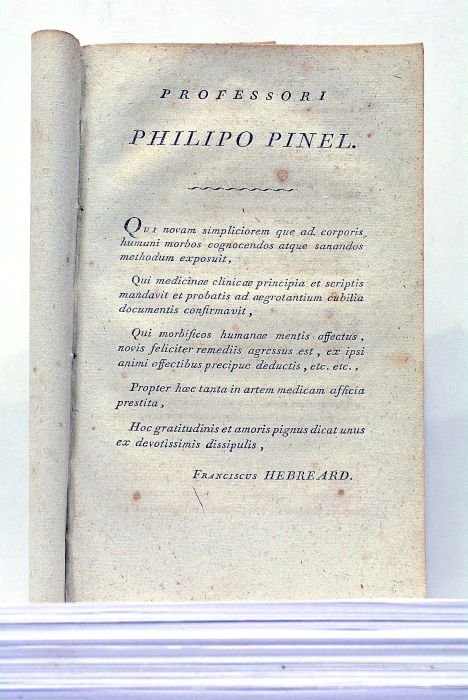 199 pages (12x20cm). Broché. Rousseurs. Le papier de quelques feuillets est légèrement bleuté. Edition Originale dédiée à Philippe Pinel de cette dissertation sur les inflammations chroniques de la peau connues à l'époque sous le nom de "scrophules".