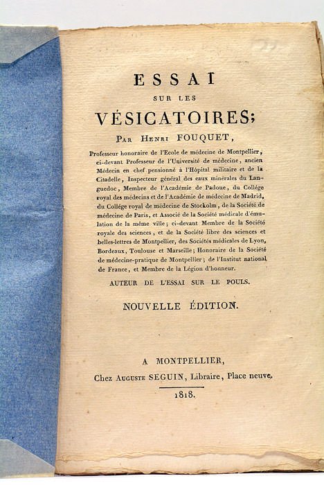 Essai sur les vésicatoires. Nouvelle édition.