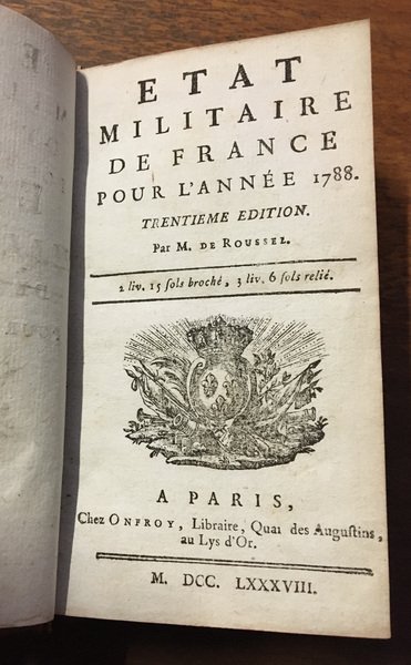 Etat militaire de France pour l’année 1788. Trentième édition.