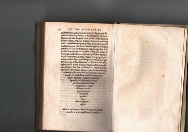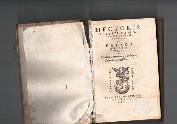 In 16°, p. perg. molle, pp. 328 + Quintum Ethicorum Aristotelis pp. 29. Marca tipografica sui front. Capilettera. Carta fresca. Cop. sciolta. Resti di lacci.