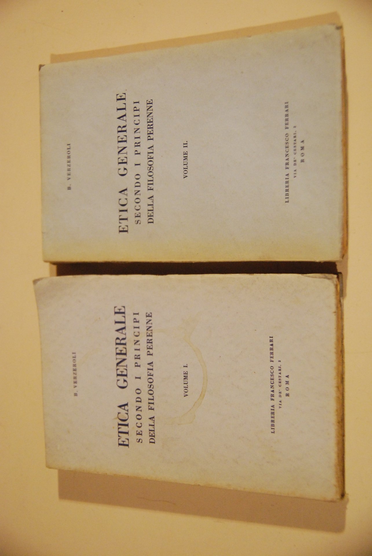 verzeroli etica generale secondo i principi della filosofia perenne 2 voll. opera cpl. nuovi. 1937 .