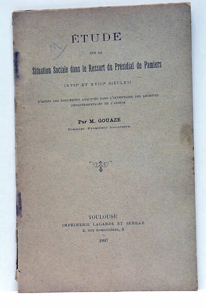 Étude sur la Situation Sociale dans le Ressort de Présidial de Pamiers. (XVIIe et XVIIIe siècles). D'après les documents analysés dans l'inventaire des archives départementales de l'Ariège.