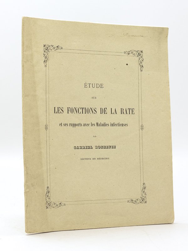 Etude sur les Fonctions de la Rate et ses Rapports avec les Maladies infectieuses [ Edition originale - Livre dédicacé par l'auteur ] Thèse présentée à la Faculté de médecine de Strasbourg et soutenue publiquement le lundi 11 janvier 1869