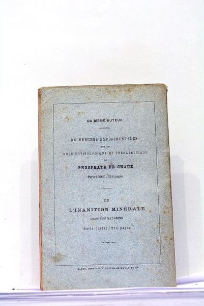 90 pages (11x17,5cm). Couverture imprimée. Rousseurs sur les plats et les feuillets. Papier bruni. Feuillets écornés. Médecine. "Du Phosphate de Chaux dans le Traitement des Fractures et des Plaies". "Fièvre Typhoïde".