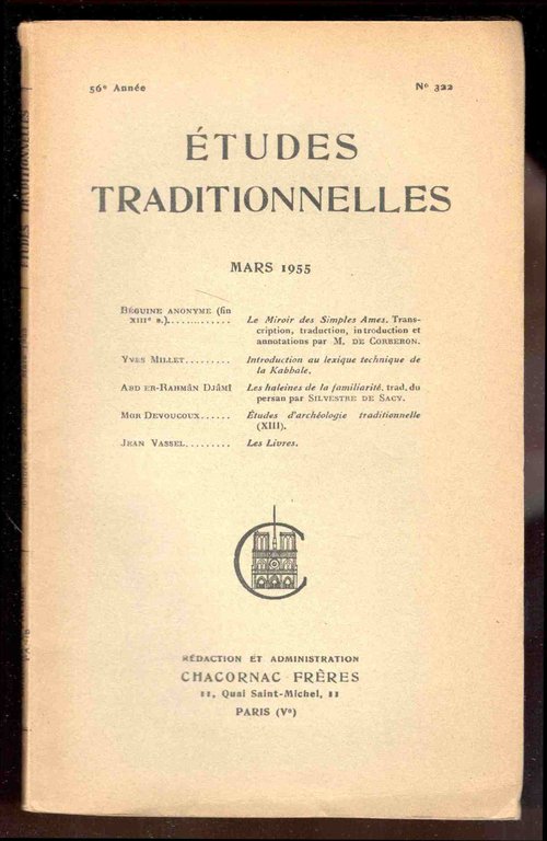 Études Traditionnelles. 56e année. Numero 322. Mars 1955