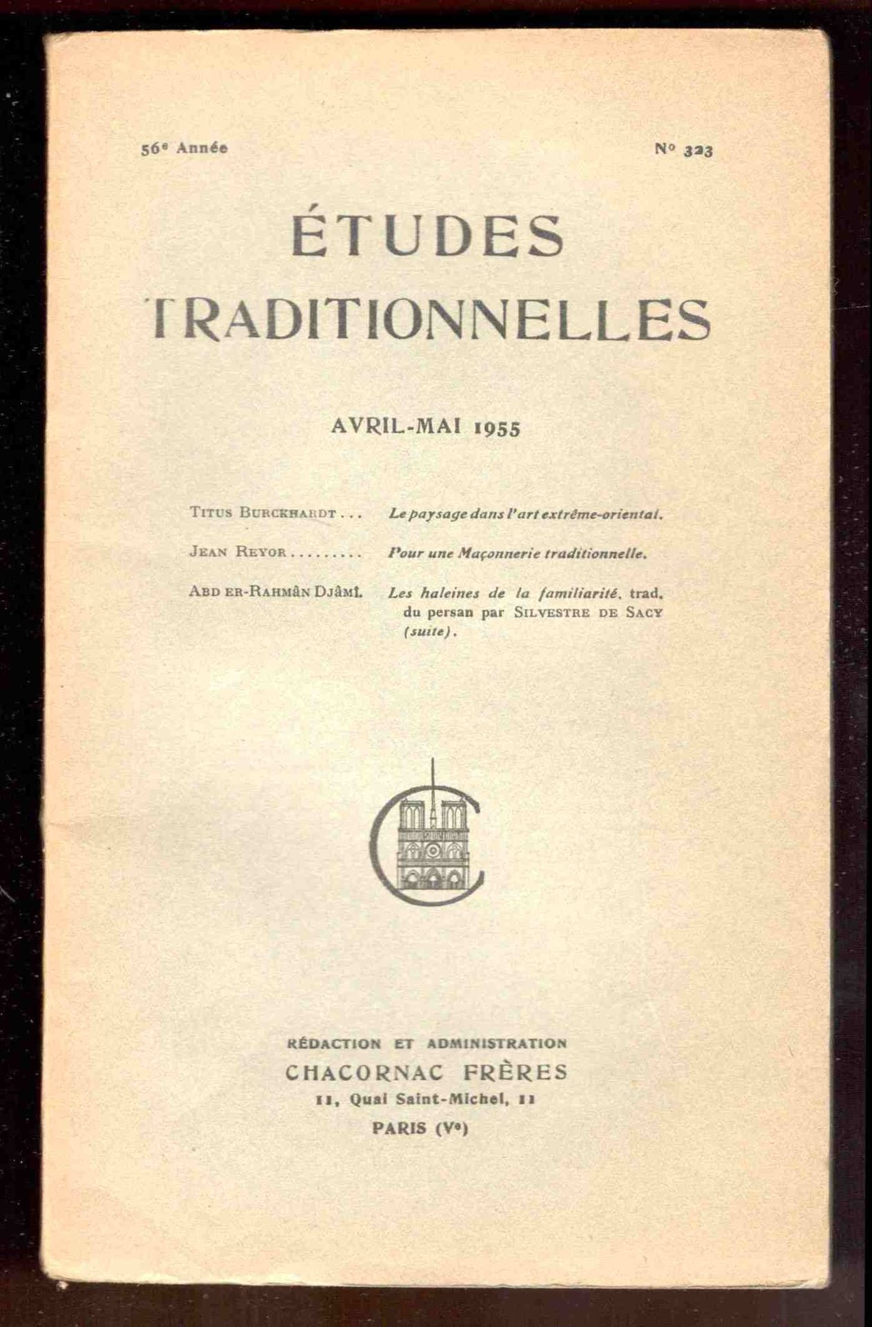 Études Traditionnelles. 56e année. Numero 323. Avril-Mai 1955