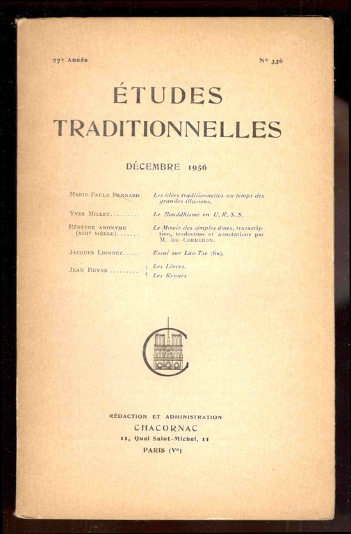 Études Traditionnelles. 57e année. Numero 336. Décembre 1956