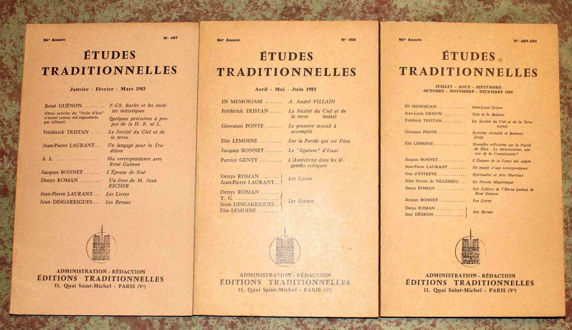 Études Traditionnelles. 86e année. Annata completa 1985. numeri 487 - 488 - 489-490. Tre fascicoli