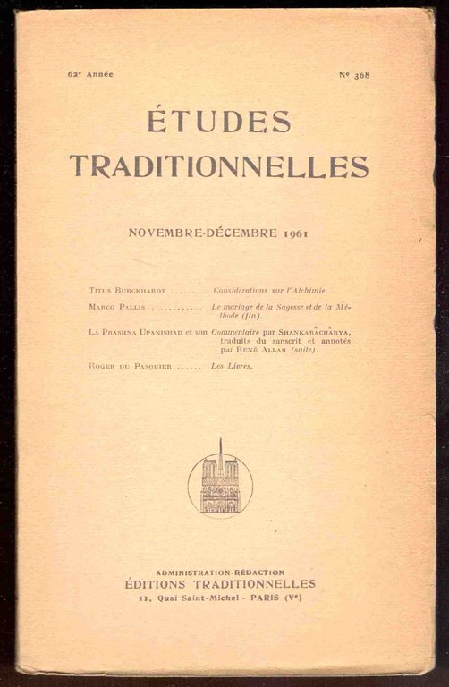 Études Traditionnelles. N°368. 62e année. Novembre-Décembre 1961