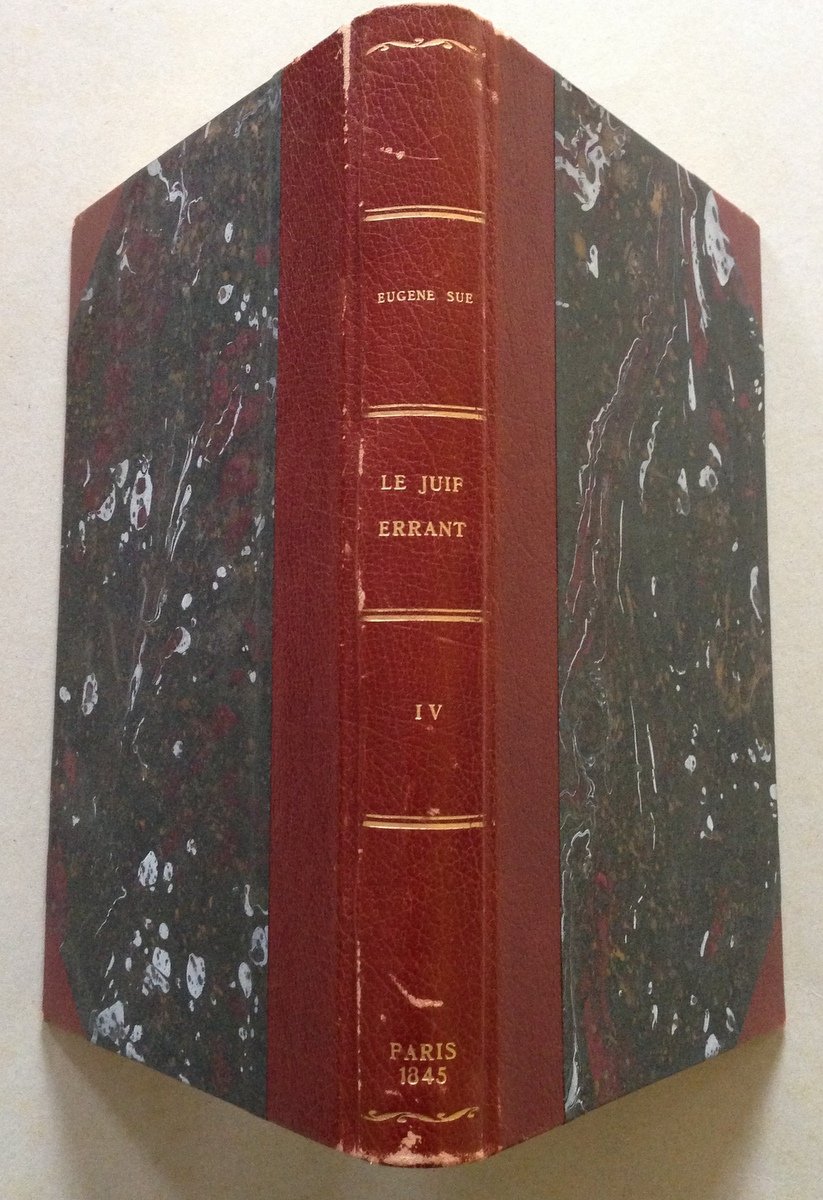 Eugène Sue, Le Juif Errant Tome 4 Illustrée par Gavarni Paulin Libraire Editeur, Paris, 1845; cm. 25.5x17; pp. 352; con ill. di Gavarni in b/n n.t. e f.t. e a p.pag.; tomo 4; cartonato editoriale m. pelle tagli dorati al dorso, testo in lingua francese. Condizioni di conservazione Esemplare in buono stato con leggere tracce d'uso e del tempo; minime abrasioni al dorso e agli angoli; interni buoni, solo antiporta frontespizio con minime mancanze (vedi foto). SETT158.L15029 MT