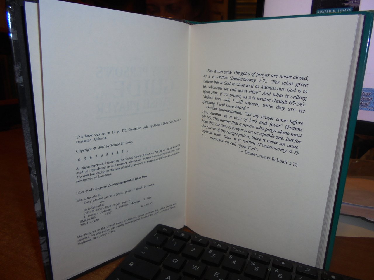 RONALD H. ISAACS. Northvale, New Jersey London, Jason Aronson, 1997. EVERY PERSON'S GUIDE to JEWISH PRAYER. In-8° piccolo, cartonato edit. xiv, 231 pp. Come nuovo. Uff. stanzetta a sinistra III - 1