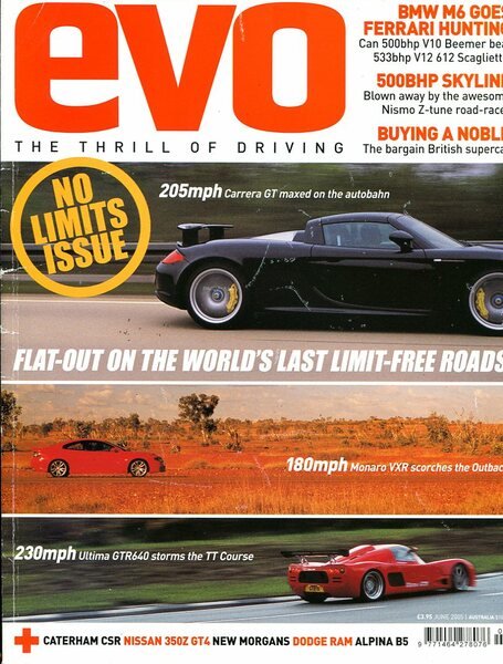 No marks or inscriptions. No creasing to covers or to slightly rubbed spine. A very clean very tight copy with bright unmarked boards, slight traces of storage, slight scratching to rear and no bumping to corners. 194pp. Performance car magazine 'The Thrill of Driving' with features on Porsche Carrera V10 GT, Monaro VXR, Ultima GTR640, BMW M6, Subaru Impreza and Forester, Dodges Viper and Ram, Range Rover Sport, Jaguar S-Type R, Morgan Aero 8, Aeromax Coupe, Nissan Skyline GT-R Z-Tune, BMW Alpina B5, Nissan 350Z GT4, Lexus GS430, Bentley Flying Spur, DMS BMW 535d, Mini Cooper S auto, BMW 320d plus pages of news, performance car listings/statistics, engineering matters and lots more.