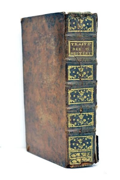 XII. 618 pages. 12 feuillets. (17x10cm). Plein veau. Dos à nerfs orné. Reliure usagée. Dos fendillé. Charnières fendues. Frottements. Quelques rousseurs et traces de mouillure sans gravité à l'intérieur. Bon état intérieur.