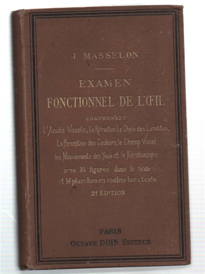 Examen Fonctionnel De L'œil: Comprenant L'acuité Visuelle, La Réfraction, Le Choix Des Lunettes, La Perception Des Couleurs, Le Champ Visuel, Les Mouvements Des Yeux Et La Kératoscopie (Images Cornéennes Et Ombres Pupillaires)
