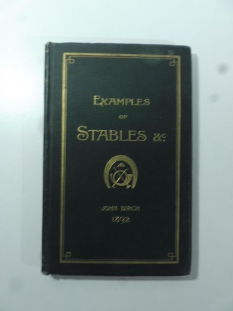 In 8, cm 16 x 26, pp. 64 con 30 tavole fuori testo 2 delle quali ripiegate. Tutta tela editoriale con fregi oro ai piatti. Edizione originale di questo testo dedicato alla costruzione di stalle e maneggi per cavalli. Sono esposti 30 diversi esempi di costruzione per le piu' varie esigenze e realizzate a Laxton, Upton, Chobam, Rufford Abbey, Cirencester, Parkstone, Wandle House ecc.