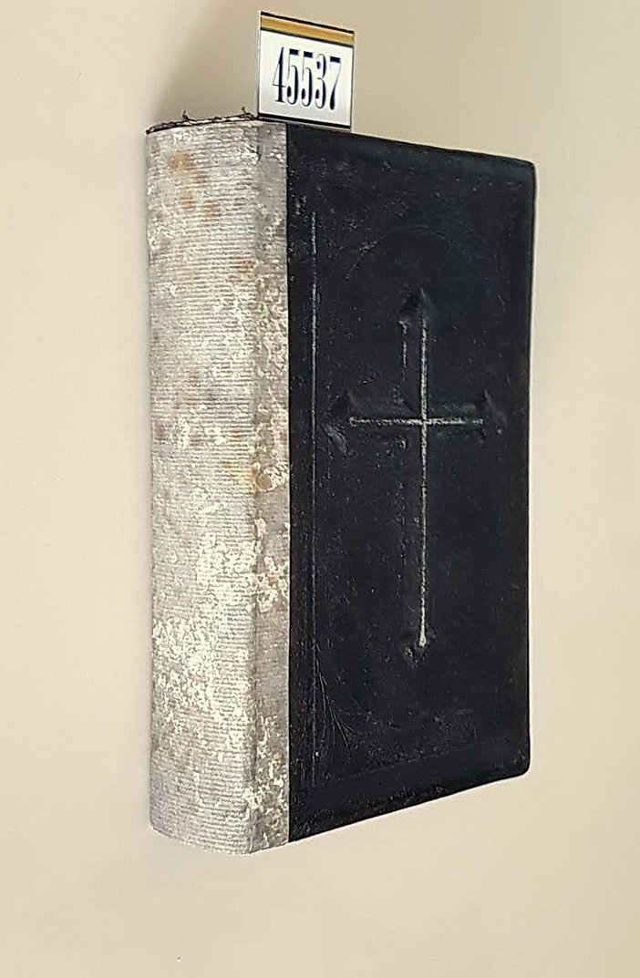 Vol. in -32 (8,5 x 13 cm.), legatura telata pesante con croce in rilievo, dorso rinforzato da cartoncino marmorizzato grigio e oro, testo in francese (texte en français), tagli dei fogli neri, pp. 288, 1 tav. illustr. in nero in antiporta e piccole illust. in nero all'inizio dei vari capitoli. In buono stato di conservazione (bon état).