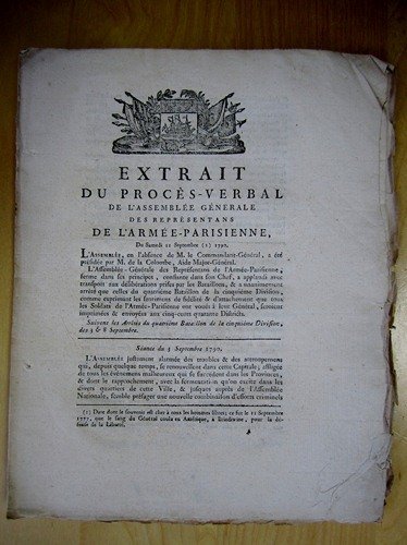 Extrait du Procès-Verbal de l'Assemblée Générale des Représentans de l'Armée Parisienne. Du Samedi 11 septembre 1790