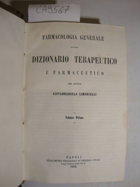 Farmacologia generale ovvero dizionario terapeutico e farmaceutico del Dottor Giovannangelo Limoncelli (volume primo e secondo)