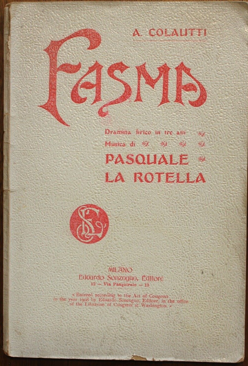 Fasma. Drama lirico in tre atti di A. Colautti Musica di P. la Rotella