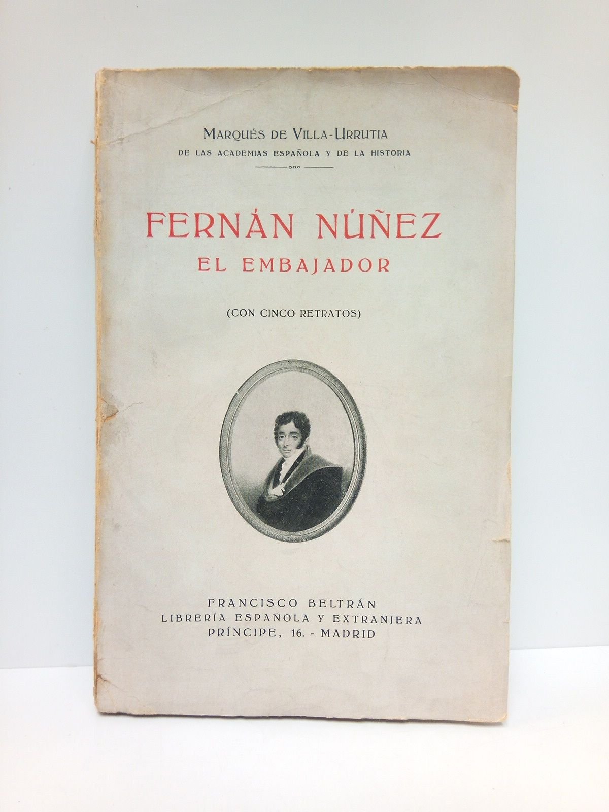 Madrid: Francisco Beltrán (Tip. Artística), 1931.- 266 p.: 5 láminas con retratos, una de ellas en la contraportada con el retrato de cuerpo entero de Fernán Núñez; 4° (22 x 14,3 cm); Rústioca Ed.* La lomera con una pequeña falta en la cabeza. Las cubiertas algo ajadas. Lleva pegado un retrato de Villa-Urrutia (recorte de periódico) al verso del retrato de Fernán Núñez. En general buen estado. GUERRA DE LA INDEPENDENCIA-FERNANDO VII
