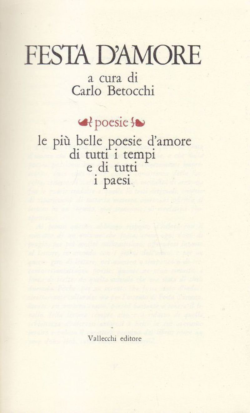 FESTA D'AMORE 2 volumi a cura di Carlo Betocchi 1969 Vallecchi libro poesie