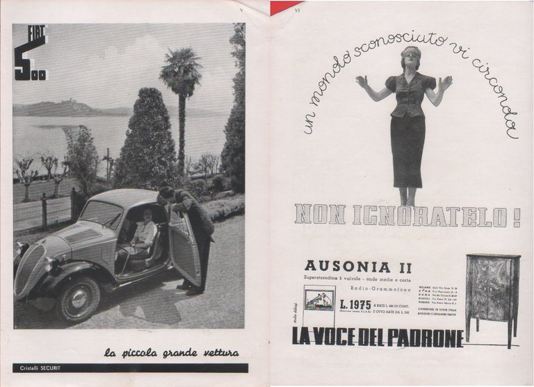 FIAT 500 la piccola grande vettura / La voce del padrone. Advertising 1937