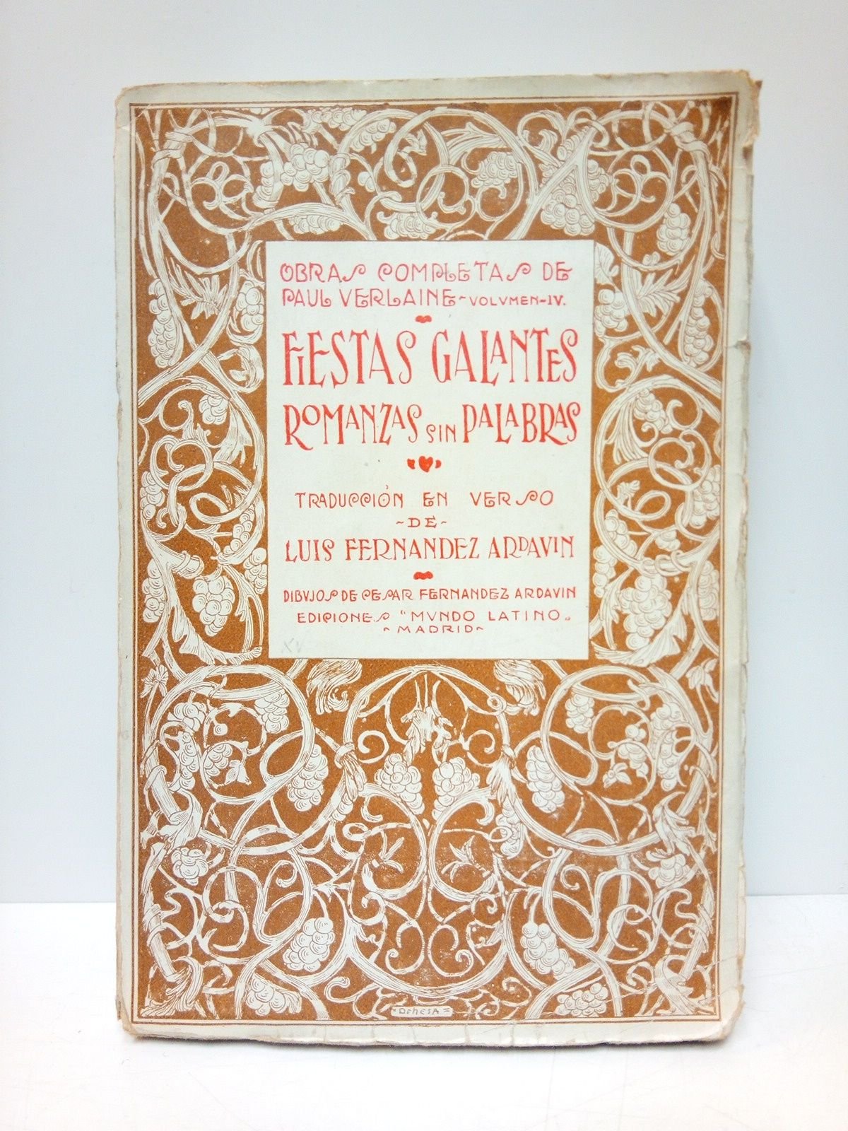 Madrid: Mundo Latino, cop. 1921.- 180 p.; 8º mayor (19,2 x 13 cm); Rústica Ed.- (Obras Completas de Paul Verlaine. 4).* Cubiertas ligeramente ajadas. La lomera con una pequeña falta en la cabeza. LITERATURA Y ESTUDIOS LITERARIOS EXTRANJEROS DE LOS SIGLOS XVI-XXI