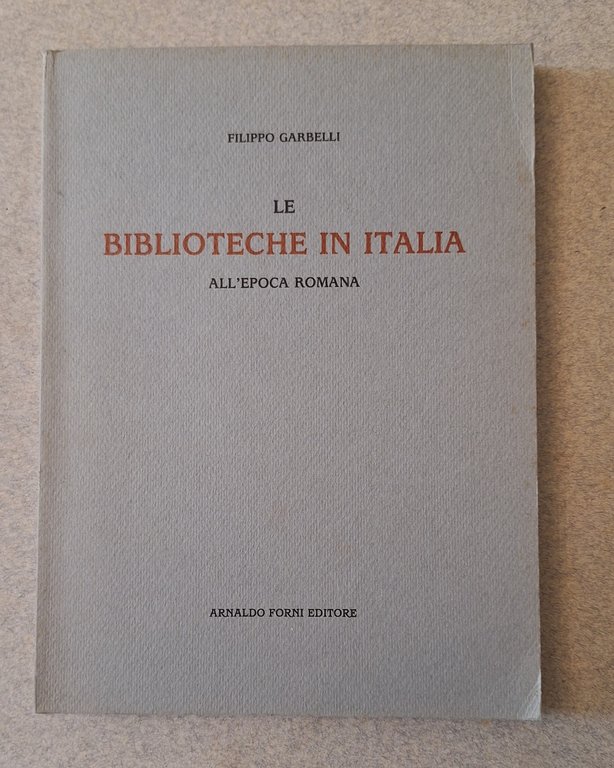FILIPPO GARBELLI LE BIBLIOTECHE IN ITALIA ALL'EPOCA ROMANA A. FORNI ED. 1989In 8°, legatura editoriale, copertina illustrata.In ottime condizioni.TUTTI I NOSTRI LIBRI SONO VISIBILI PREVIO CONTATTO MAIL, TELEFONO O WHATSAPP NELLA NUOVA SEDE DI MILANO: LIBRERIA COSMOPOLIS, VIA JOMMELLI 22, MILANO.3313109672