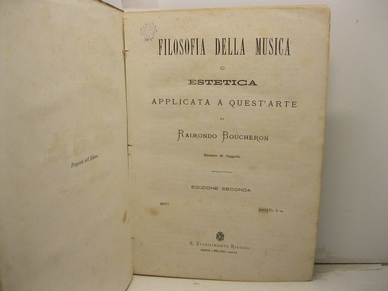 Filosofia della musica o estetica applicata a quest'arte di Raimondo Boucheron. Maestro di cappella. Edizione seconda